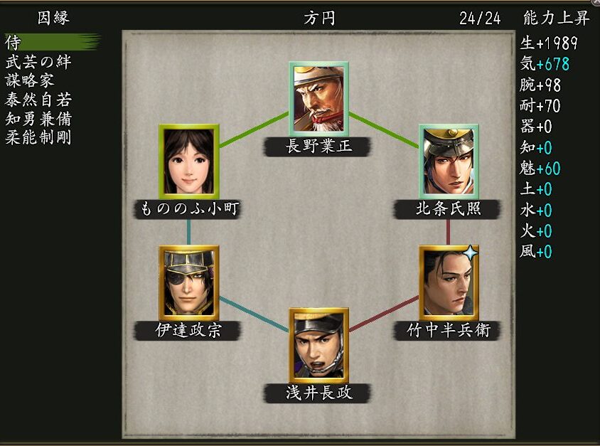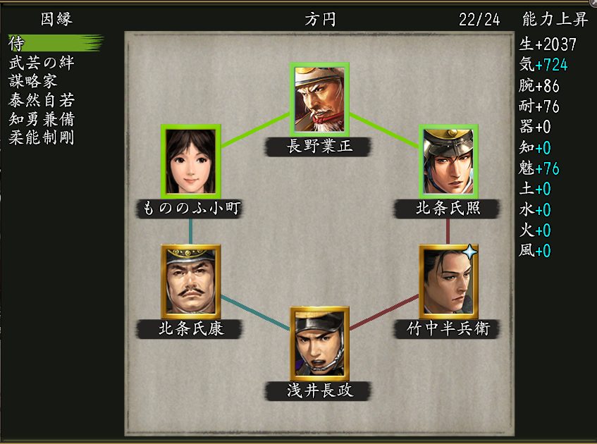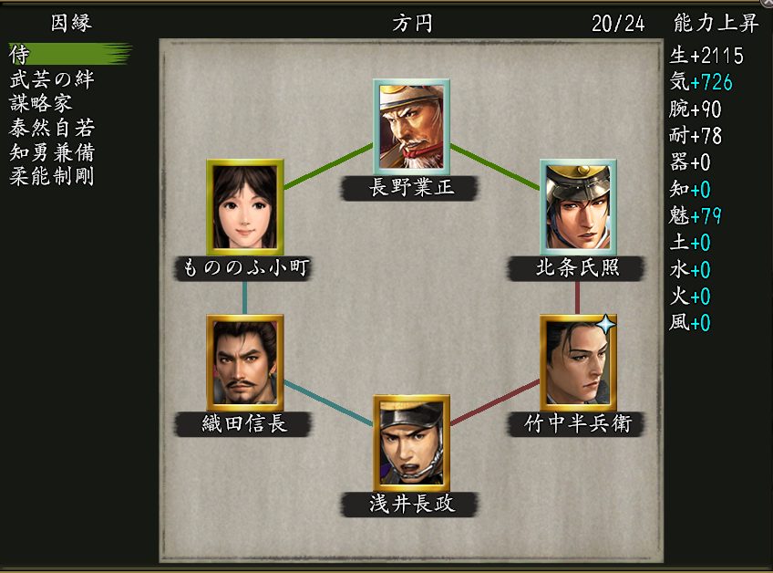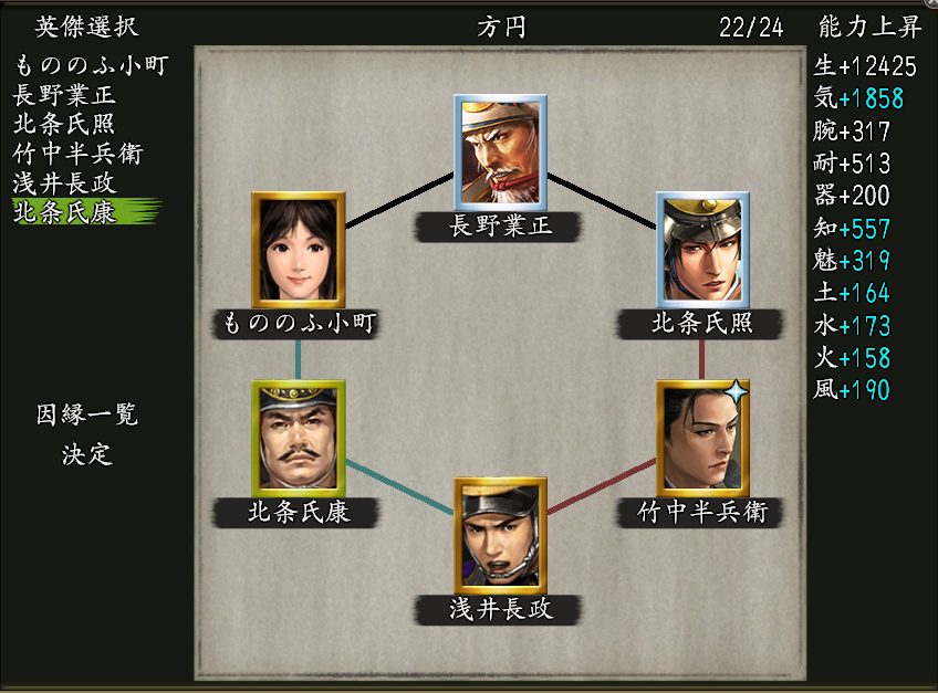 「武芸」「野心家」の因子持ちの北条氏康&織田信長と交代可能で、長期でインされている方や無課金や微課金の方が冥宮登っている内に組めそうな因縁6の陣法で、おすすめです👍